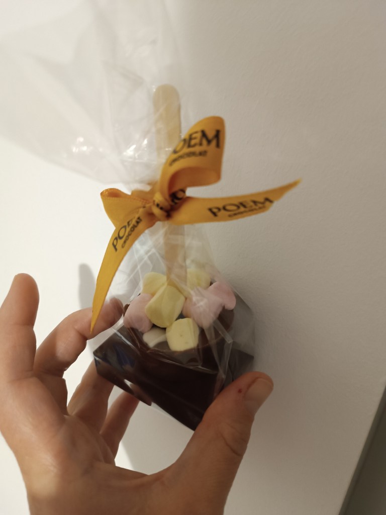 Cum se apropie Paștele m-am gândit să iau niște cadouri, iar câteva produse de la festival mi s-au părut numai bune pentru așa ceva: pentru familia mea am luat niște ciocolată caldă, la fel și pentru familia de baștină de la Poem, pentru mine și soțul meu niște Mied de la Miedăria iar pentru mine și colegii mei o cafea de la Etolia.