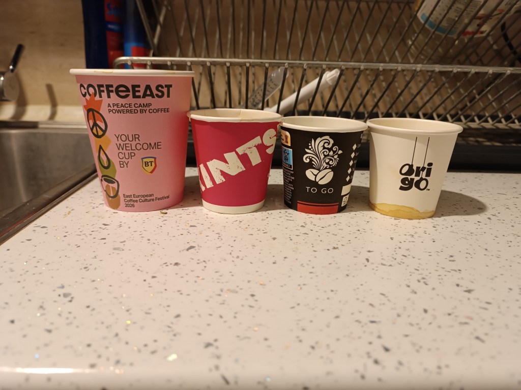 1. Faptul că nu toți expozanții aveau pahare cu logo-ul lor. Da, mă gândesc că poate nu are rost să investească în așa ceva că multă lume degustă și aruncă paharele, dar poate mai sunt unii ca mine care păstrează paharele cafelelor care le-au fost pe plac ca să știe ce să comande pe viitor.